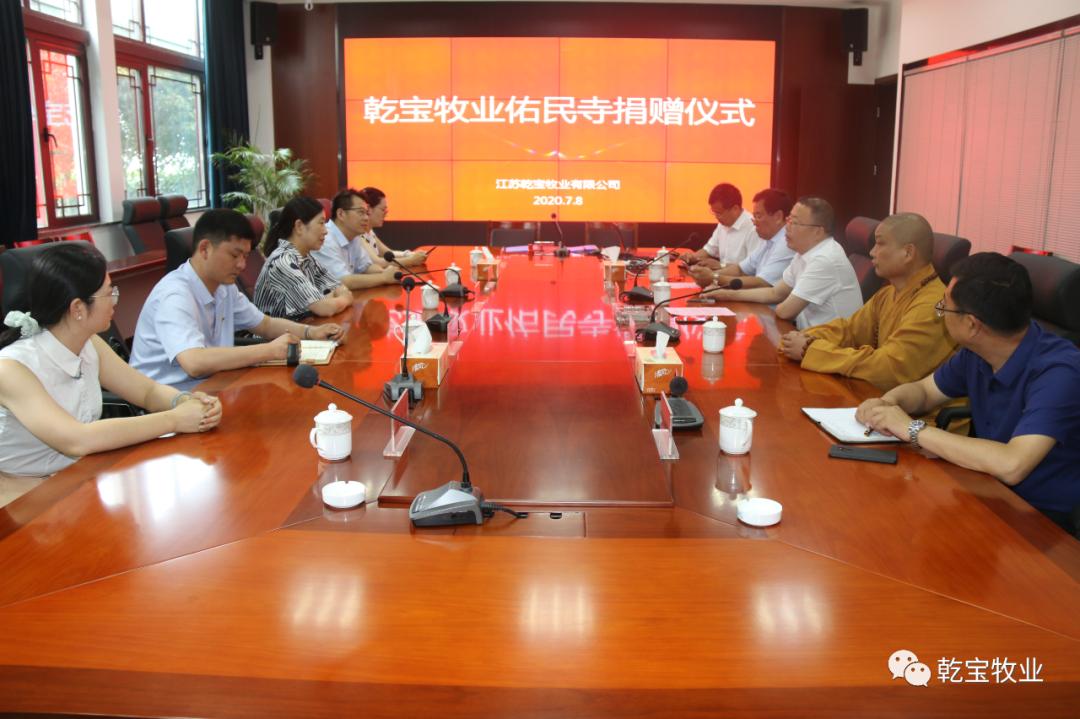 2020年7月8日下午,乾寶牧業公司舉行了隆重的捐贈儀式,由乾寶牧業公司建造的佑民寺捐贈給鹽城市亭湖區佛教協會。