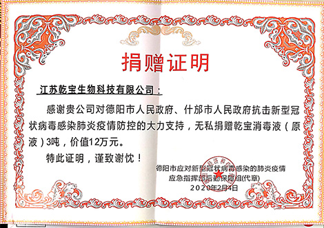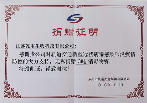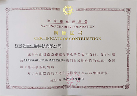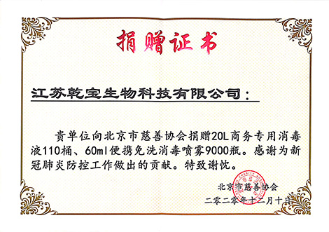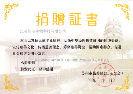 蘇州市慈善總會捐贈證書