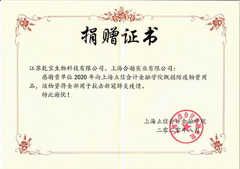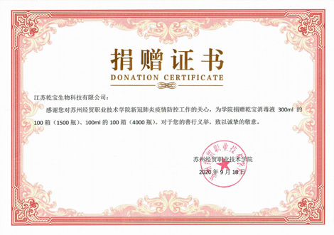 蘇州經貿職業技術學院捐贈證書2020.9.18
