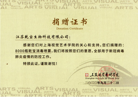 上海視覺藝術學院捐贈證書2020.10.22