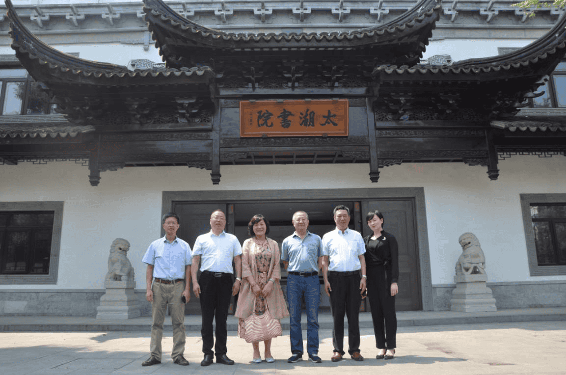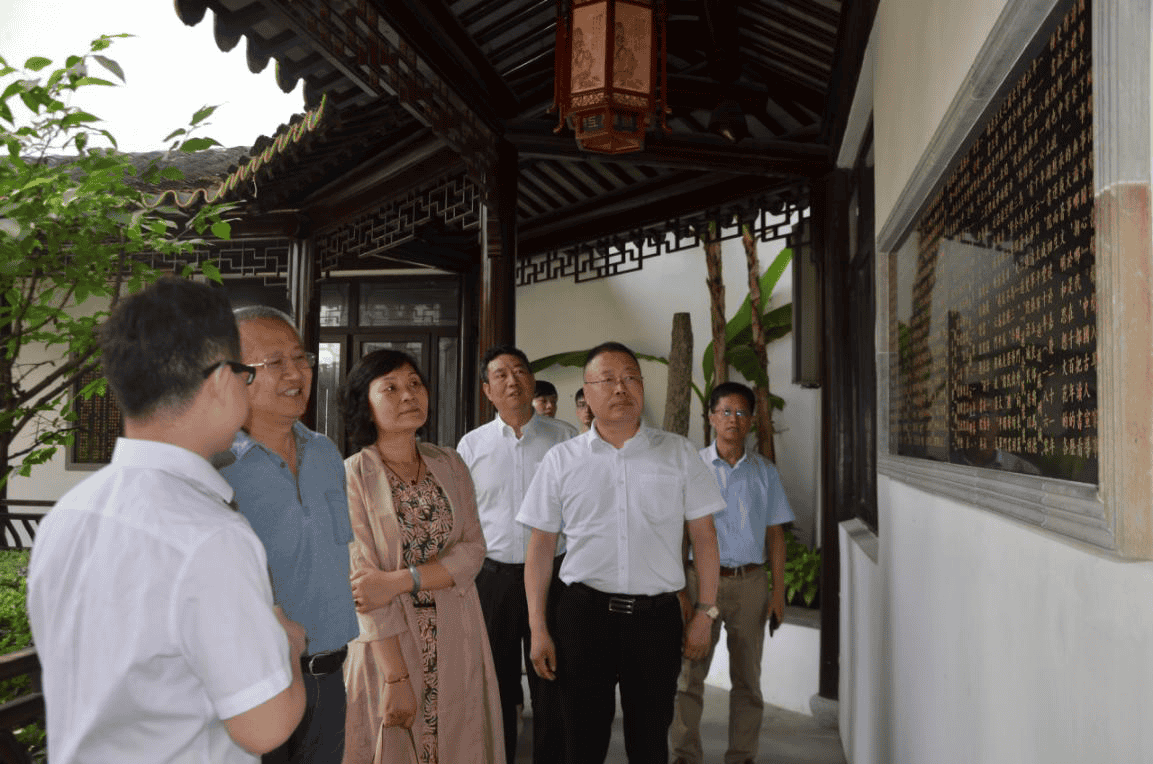 在乾寶集團和太湖書院領導及工作人員的陪同下,高觀一行參觀了乾寶集團旗下的太湖書院文博館、非遺古建館、允中藝術館、名家藏書館和入選了“天堂蘇州·百園之城”項目的太湖書院易園,考察了湖羊文化,并參加了調研座談會。