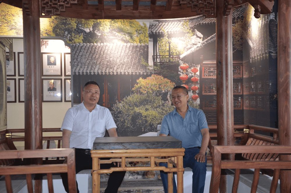 太湖書院理事長王躍程(左)和中國肉類協會副會長高觀(右)在非遺古建館