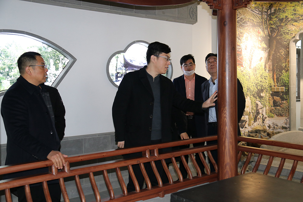 集團(tuán)領(lǐng)導(dǎo)陪同李旭總監(jiān)一行參觀了太湖書院一園五館,并重點考察了非遺古建館內(nèi)的蘇式建筑相關(guān)器具展品、琴棋書畫館內(nèi)的戲臺建造樣式,以及書院精心打造的下沉式蘇式園林——易園,全面了解了乾寶集團(tuán)旗下建筑設(shè)計公司在蘇式園林和中式建筑設(shè)計營造方面的專業(yè)和特色。