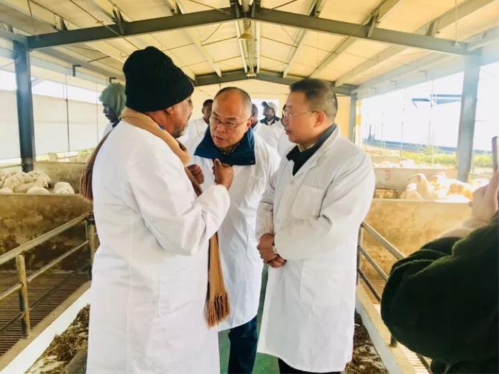 非洲的朋友看到年出欄30萬(wàn)只湖羊的規(guī)模和現(xiàn)代化、標(biāo)準(zhǔn)化的養(yǎng)殖感到震撼,直接用中文表達(dá),太好了,太偉大了,太了不起了!