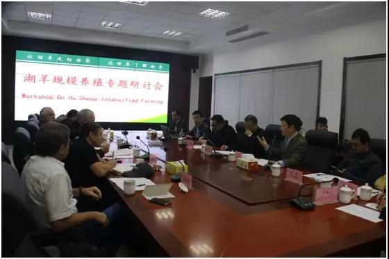 Hugh Blair休/布萊爾等一行專家教授與乾寶湖羊產業公司領導員工在會議室召開湖羊規模養殖專題研討會