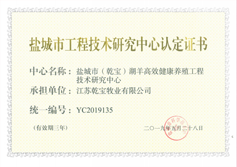 鹽城市工程技術研究中心認定證書