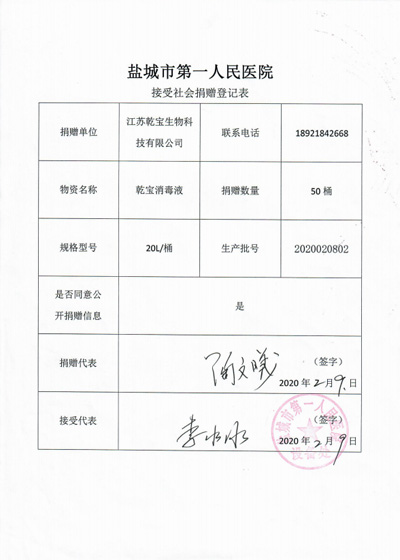 鹽城市第一人民醫院捐贈登記表2020.2.9