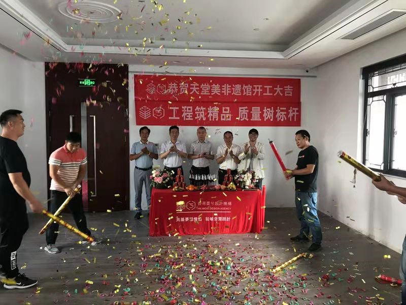 ? ? ? ?2019年9月19日上午8時58分,蘇州“天堂美非遺館”開工儀式在太湖書院隆重舉行,天堂美非遺館是太湖書院“一園六館”建設中具有代表性的展示場館,該場館于2019年9月19日開工,10月30日竣工,特聘請香山幫傳統建筑營造技藝國家級非物質文化遺產傳承人陸耀祖大師為總指導,多名市、區級代表性傳承人參與共同建設,建成后將成為“香山幫傳統建筑營造技藝”傳承基地內具有代表性的精品展館。