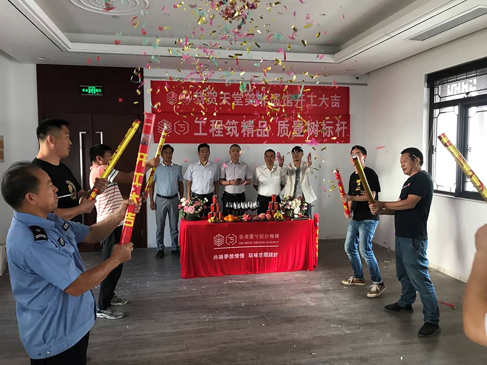 ? ? ? ?參加天堂美非遺館開工儀式的有:蘇州市香山幫營造協會常務副會長兼秘書長許建華、市級代表性傳承人郁文賢、區級代表性傳承人陸云龍、乾寶集團執行總裁王翼寧、蘇州市天堂美景觀綠化工程有限公司法定代表人馬向農、蘇州墨兮設計工程有限公司總經理周德明等。施工單位周總承諾確保該項目保質、保量、保安全,按期完成施工任務!