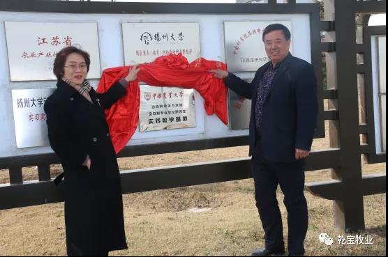 自乾寶牧業(yè)公司成立之日起,中國農(nóng)業(yè)大學(xué)羅海玲教授就帶著振興中國畜牧業(yè)的情懷,在基地設(shè)計、養(yǎng)殖技術(shù)、疫病防治、飼料配方等方面,給予大力幫助和指導(dǎo)。動物科技學(xué)院有關(guān)領(lǐng)導(dǎo)也到公司實(shí)地考察并給予極大支持。中國農(nóng)業(yè)大學(xué)動科學(xué)院在乾寶公司設(shè)立了本科生實(shí)驗教學(xué)基地,羅海玲教授團(tuán)隊的本科生和研究生多次到乾寶從事教學(xué)科研活動。本次受主管院長王軍軍教授委托,為全日制專業(yè)學(xué)位研究生實(shí)踐教學(xué)基地掛牌。中國農(nóng)業(yè)大學(xué)在一個企業(yè)同時設(shè)立本科和研究生基地的,在全國同行企業(yè)中是絕無僅有的。