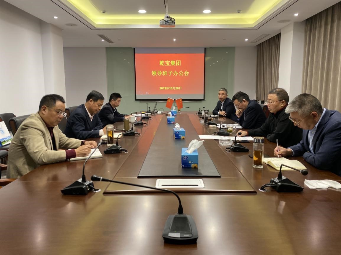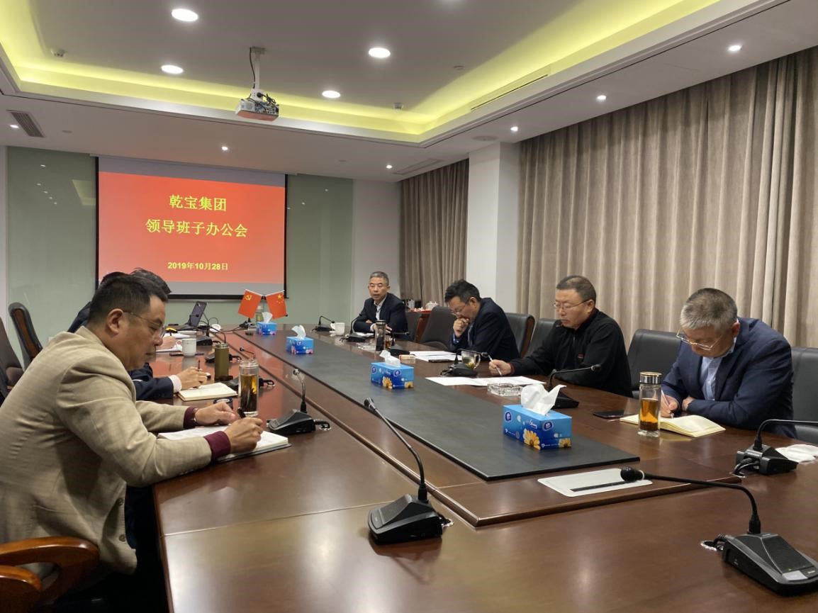 ? ? ? ?2019年10月28日,乾寶集團(tuán)在總部召開(kāi)領(lǐng)導(dǎo)班子辦公會(huì)。董事長(zhǎng)王躍程、副董事長(zhǎng)朱波、執(zhí)行總裁王翼寧、副總裁許建華、副總裁孟憲考、天堂美公司總經(jīng)理馬向農(nóng)、乾寶生物科技公司總經(jīng)理丘東、辦公室主任陳建飛參加會(huì)議。