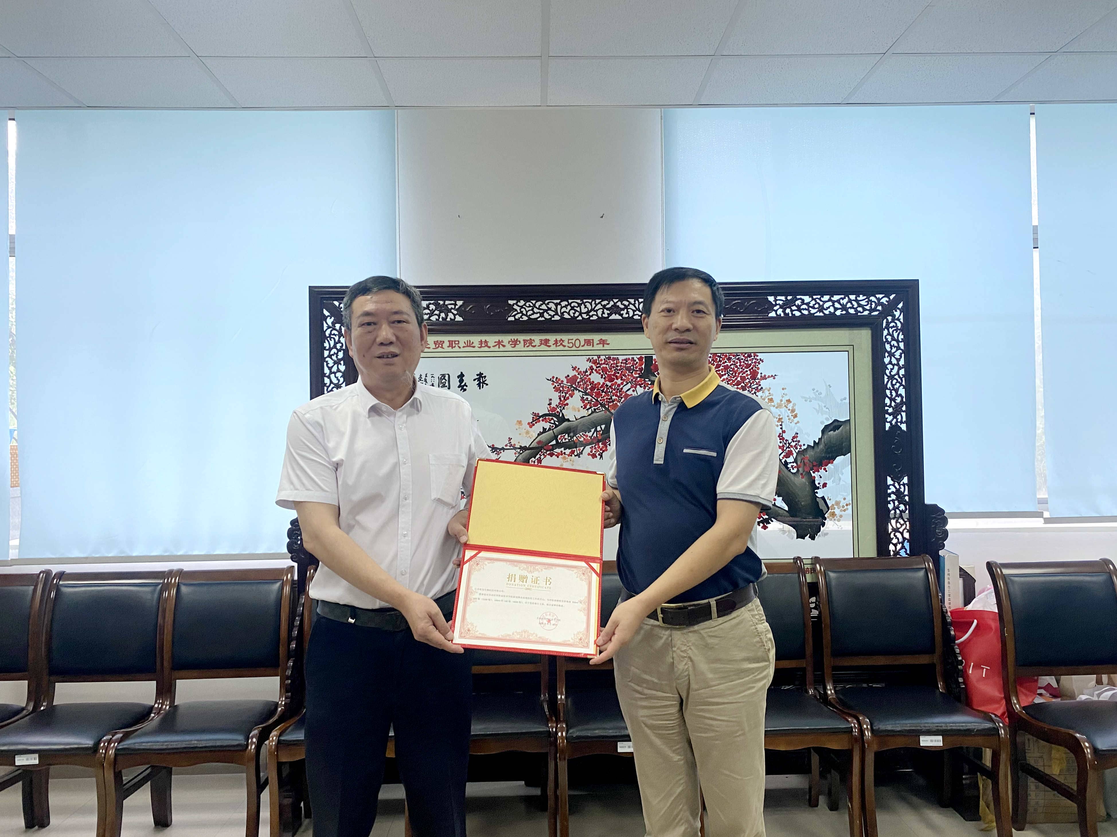 最后,雙方進行了捐贈物資的交接,蘇州經貿職業技術學院副院長沈文其向企業頒發了捐贈證書,并合影留念。