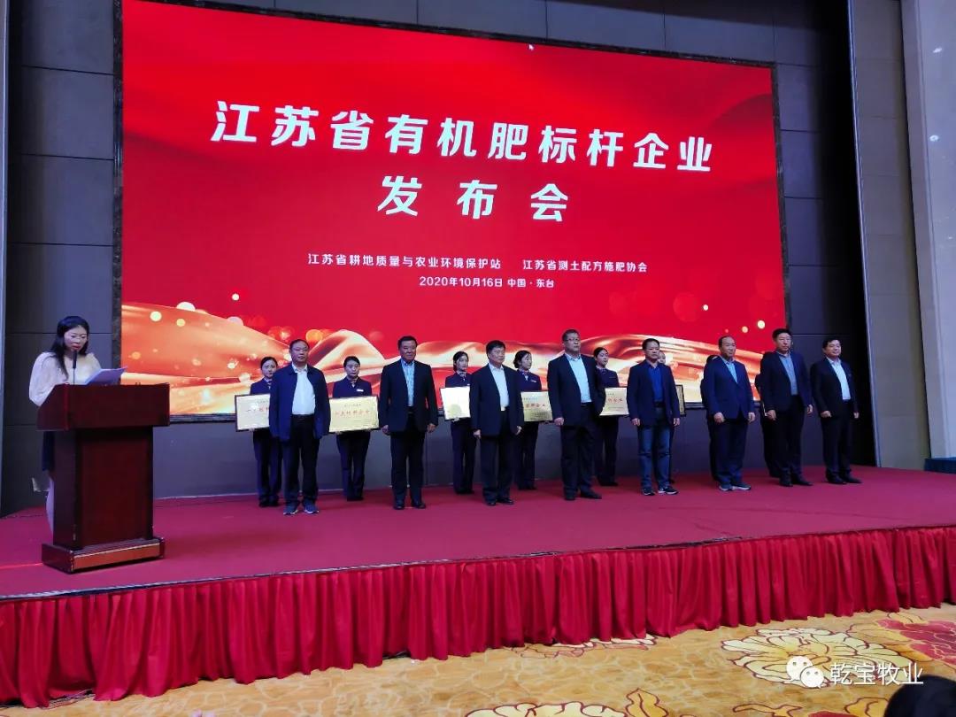 2020年10月16日,江蘇乾寶有機肥公司被江蘇省耕地質量與農業環境保護和江蘇省測土配方施肥協會聯合評為“江蘇省有機肥料十大標桿企業”。這是乾寶牧業繼“江蘇精品”之后獲得的又一殊榮。?
