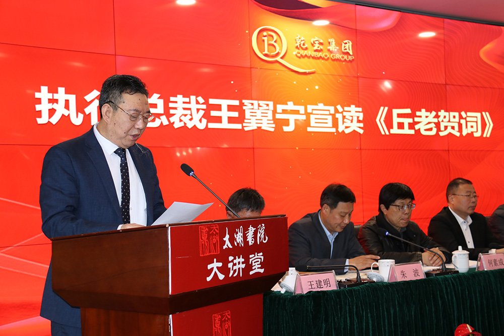 會(huì)上,首先由王翼寧總裁宣讀了太湖書(shū)院山長(zhǎng)丘亮輝專門為本次會(huì)議發(fā)來(lái)的賀信。丘亮輝山長(zhǎng)遠(yuǎn)在北京不能參加會(huì)議,但仍時(shí)刻心系集團(tuán)年會(huì)。山長(zhǎng)充分肯定了書(shū)院在2020年取得的重要業(yè)績(jī),并預(yù)祝此次會(huì)議成功舉辦,衷心希望乾寶集團(tuán)在董事長(zhǎng)的帶領(lǐng)下互相尊重,互相包容,互相學(xué)習(xí),取長(zhǎng)補(bǔ)短,共同為打造百年企業(yè)和百年書(shū)院而不懈努力!