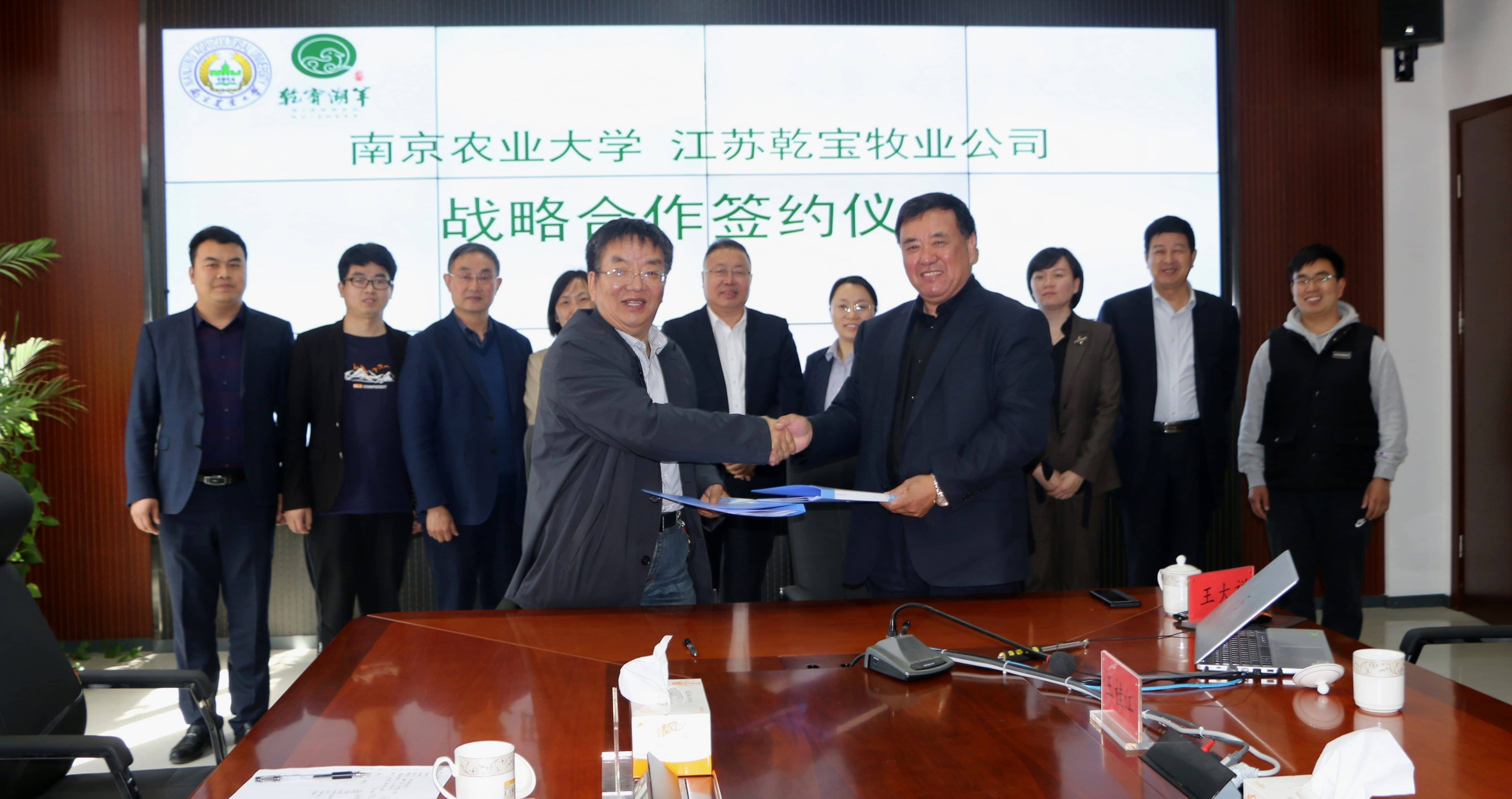 南京農業大學利用其人才、技術、學科等優勢,為江蘇乾寶在湖羊育種、養殖、加工、糞污處理及生態農業等方面開展技術咨詢,實施成果轉化;在湖羊育種繁殖、智慧牧業、糞污處理及生態養殖模式加強合作及項目申報;在乾寶湖羊種業保護、擴繁推廣及三產融合、產業循環發展的基礎上,南京農業大學與江蘇乾寶牧業公司聯合建立“江蘇乾寶湖羊性能檢測中心”,并積極籌建“南京農業大學乾寶湖羊產業研究院”;雙方將進一步在湖羊保種、提純復壯、新品系開發、飼料精準飼喂等方面開展深層次的科研合作。
