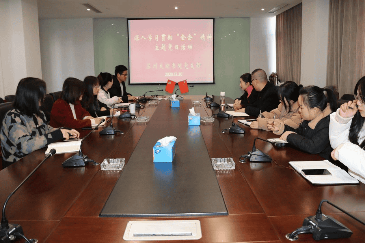 會上全體成員還觀看了視頻《習 近平總書記講述的紅色故事》。 支部書記劉斌指出,學習、宣傳、貫徹好黨的十九屆五中全會精神,是當前和今后一個時期書院的重要政治任務。全體黨員要切實提高政治站位,掀起學習熱潮,不斷探索豐富學習形式,將集體學習與個人學習相結合。同時要堅持將十九屆五中全會精神與實際工作深度結合,做到知行合一,敢于擔當,努力把學習成果轉化為解決問題的實際能力,為太湖書院奮進“十四五”,開創新局面貢獻新的智慧和力量。