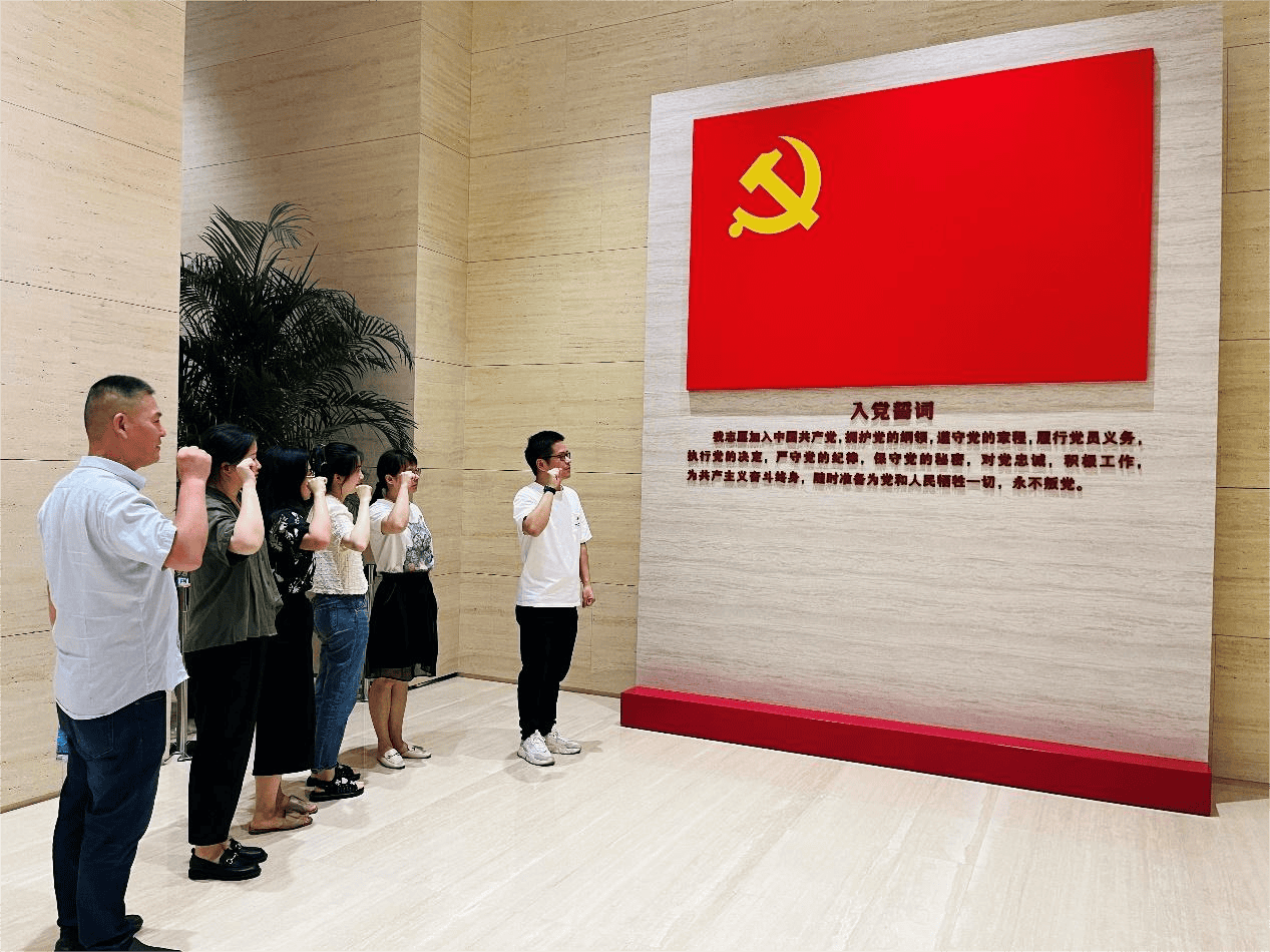 最后,黨員們來到了宣誓大廳,黨支部書記陳建飛同志帶領大家面向黨旗,莊嚴地進行重溫入黨宣誓:“我志愿加入中國共產黨,擁護黨的綱領,遵守黨的章程……”,以錚錚誓言,表達對黨的無限忠誠和為黨的事業奮斗終身的堅定信念。