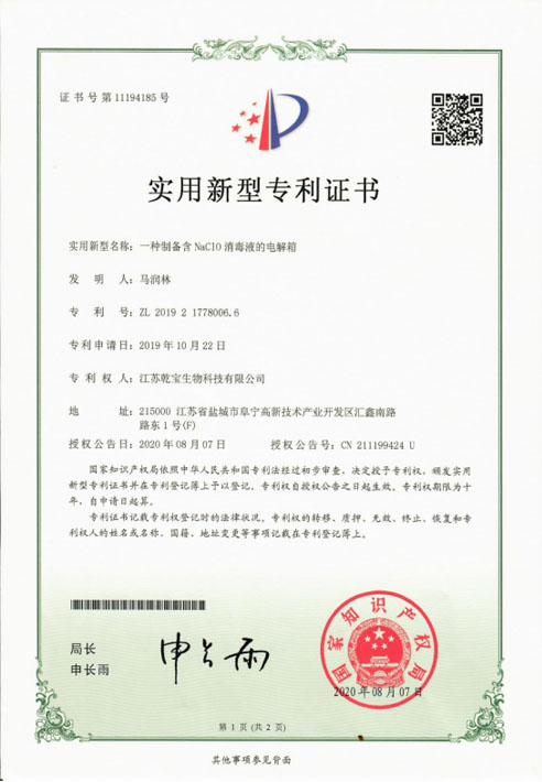 公司研發團隊經過多年持續研發和檢測,成功將實驗室產品轉化為工業化產品,建成了年產過萬噸不燃不爆、安全環保的乾寶®消毒液,并已通過第三方的檢測,取得消毒產品所必須的各類資質。乾寶®消毒液已獲得美國FDA(OTC)注冊證書和歐盟REACH認證,擁有了打開國際市場大門的鑰匙。
